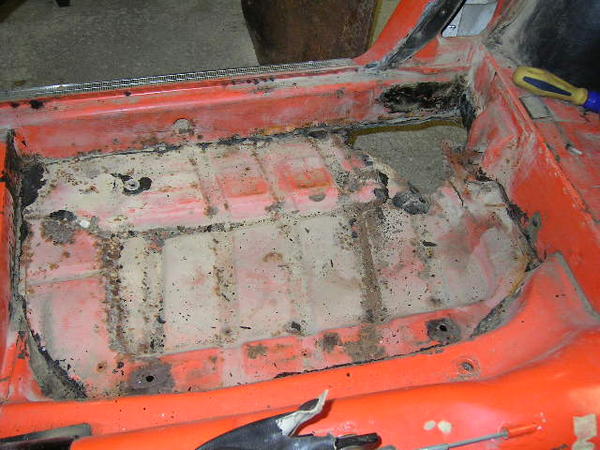 Tonight I hope to get a few more patch panels made up for the rear floor corner/wheel well; lots of rust to cut out back there.