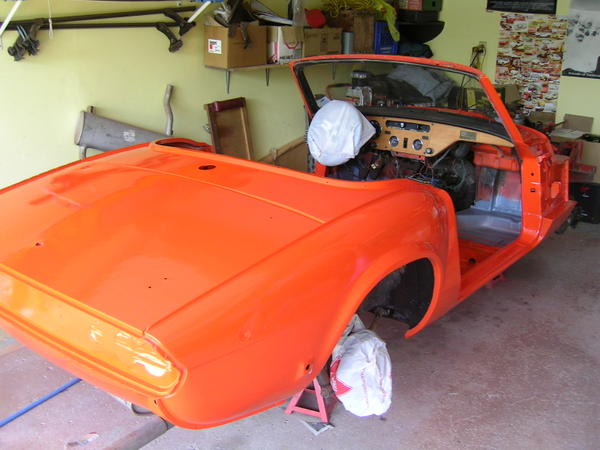 The real good news is that I actually started putting pieces back on the car on Sunday: tail lights and the abs transmission tunnel are back on. Also, the new rims are looking very nice. There is a lot of hard work on Judy's parts to get to this point.