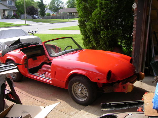 The car is painted other than the top of the bonnet. I've been waiting for a dry, calm day to paint the outside (the underside is complete). Last Sunday would have been perfect but the forecast was for rain, which never materialized.