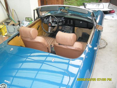 When I purchased the car it was refrigerator white but I loved the blue color that would come through when it chipped. I stripped the paint and brought it back to the original color of Teal Blue. I took it to a few car shows and put 2000 miles on it and then had it shipped to Korea where I moved with my wife in 2003. Here I had time to do the interior and sort the car out. I purchased a rebuilt engine on eBay and had it shipped to Korea. I had while in the states found an overdrive transmission so in may of 2009 I worked with Korean mechanics and put in the rebuilt early 1974 engine and the transmission that I had replaced all the seals.
